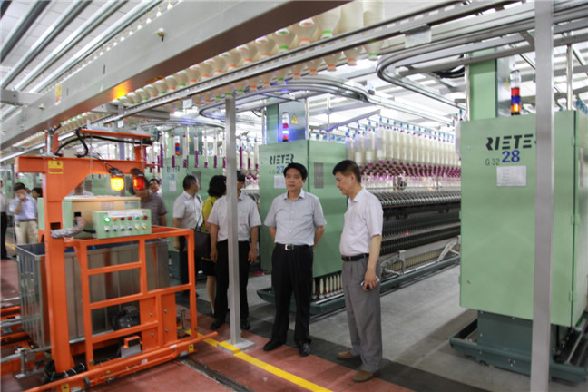 匯報會上,紡織染公司總經(jīng)理徐憲華就崇天紡紗7.8萬枚環(huán)錠紡項目推進(jìn)發(fā)展情況進(jìn)行了詳細(xì)介紹。中國棉紡織行業(yè)協(xié)會朱北娜會長,江南大學(xué)高衛(wèi)東副校長、開發(fā)區(qū)管委會羌強主任,經(jīng)信委閆靜翔副主任分別致辭,認(rèn)為南通崇天環(huán)錠紡紗項目目標(biāo)定位準(zhǔn)、起點高、實施效果好,具有樣板示范效應(yīng),其先進(jìn)程度完全符合國家提倡的《中國制造2025》制造業(yè)智能化生產(chǎn)的總體要求,是棉紡行業(yè)技術(shù)改造和轉(zhuǎn)型升級的標(biāo)桿。