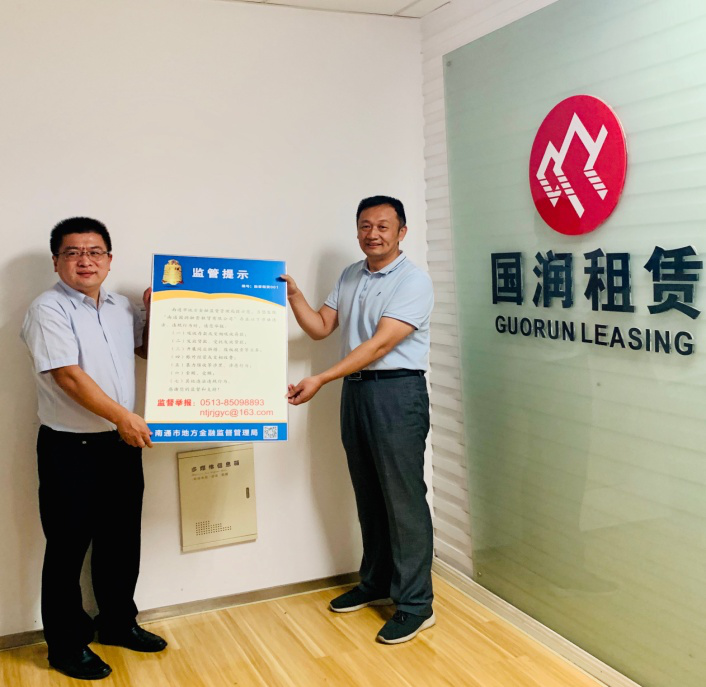 國(guó)潤(rùn)租賃公司喜獲南通市金融監(jiān)管局001號(hào)監(jiān)管提示牌