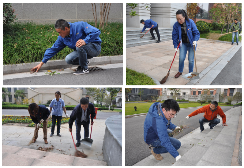 活動現(xiàn)場,在本部黨支部組織委員王建興分配下,16名黨員、1名預備黨員、2名入黨積極分子,被分為6組,分別負責園區(qū)內(nèi)6幢建筑一層及建筑周邊落葉、雜草的清理。分配完后,黨員志愿者們手持掃帚,簸箕和垃圾袋,來到指定建筑前,不怕臟、不怕累,清掃建筑一層及附近的落葉、雜物,并拔除石階上的雜草。用實際行動為打造美麗園區(qū)形象貢獻自己的一份力量。